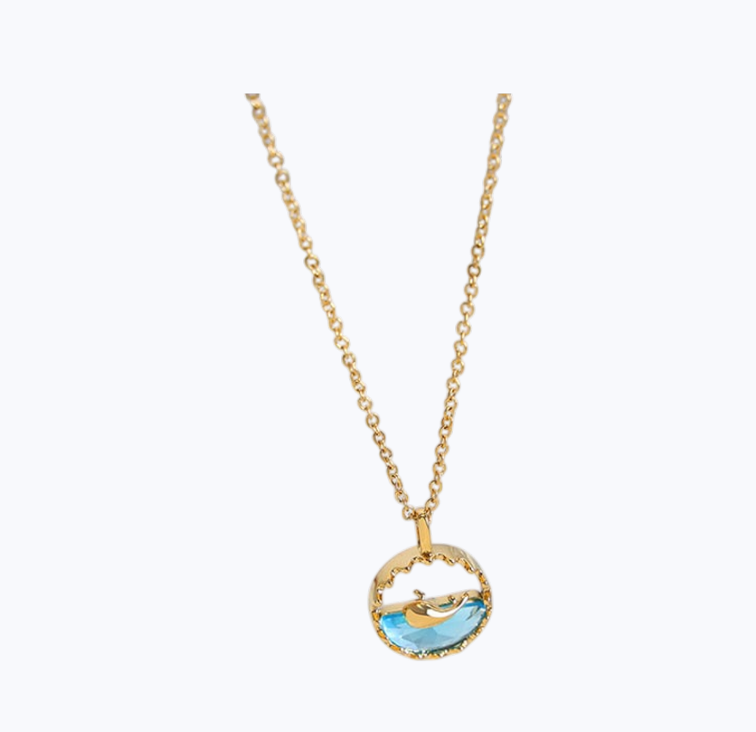 Embrace elegance and sustainability with the Ocean Serenity Pendant. Crafted from recycled metals and eco-conscious materials, this gold-plated necklace features a serene wave design set within a shimmering ocean-blue crystal. The pendant symbolizes calm, nature, and renewal — perfect for conscious fashion lovers.
